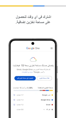 هل تحتاج إلى مساحة أكبر لتوثيق ذكرياتك ومشاريعك المستقبلية دون أي قيود؟ ارتقِ بتجربتك نحو مستويات جديدة من السعة والأمان مع اشتراك Google One. اختر الخطة المثالية التي تناسب متطلباتك الشخصية والمهنية، وتمتع بمساحة سحابية واسعة تلبي كل احتياجاتك، من ملفات عملك إلى ألبومات صور عائلتك، وصولاً إلى مشاريعك الإبداعية الطموحة. Google One يضمن لك الحفاظ على كل ما هو قيم لك بأمان ومرونة تامة، مع إمكانية الوصول إليه في أي وقت ومن أي مكان.