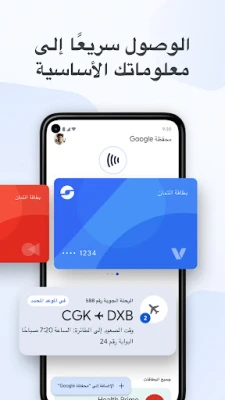 مع محفظة Google، استمتع بوصول سريع وآمن لعناصرك اليومية الأساسية. ادفع بسهولة عبر النقر في أي مكان يقبل Google Pay، وصعد الطائرات، وادخل السينما بهاتفك فقط. حافظ على بياناتك في مكان واحد آمن وموثوق أينما ذهبت.
