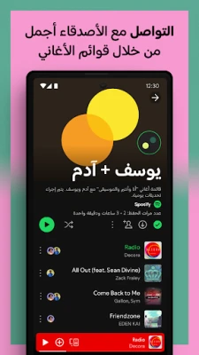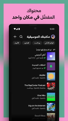 استكشف عالم Spotify الشامل للموسيقى والبودكاست مجاناً. استمع لملايين الأغاني والألبومات المفضلة لديك وقم بتنسيق قوائمك الخاصة على جوالك. مع Spotify Premium، استمتع بمزايا إضافية مثل كتالوج الكتب الصوتية والاستماع إلى المحتوى بدون اتصال بالإنترنت.