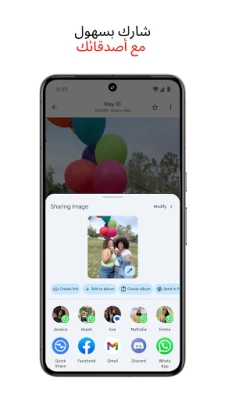لا تقتصر تجربة "صور Google" على الحفظ والتعديل فحسب، بل تمتد لتشمل إعادة إحياء أجمل اللحظات ومشاركتها مع من تحب. استرجع ذكرياتك المفضلة مباشرةً من التطبيق، وشارك صورك وفيديوهاتك وألبوماتك مع أي شخص في جهات اتصالك، حتى وإن لم يكونوا من مستخدمي "صور Google". حرر مساحة ثمينة على هاتفك بلمسة زر، حيث يمكنك إزالة النسخ الاحتياطية من جهازك دون المساومة على أمانها في السحابة. ولا تتردد في تحويل ذكرياتك الرقمية إلى واقع ملموس عبر دفاتر الصور واللوحات الجدارية والمزيد، بفضل شراكة Google، بينما تتيح لك عدسة Google استكشاف عالم من المعلومات حول ما يظهر في صورك. مع بنية أمنية متقدمة من Google، تظل ذكرياتك محمية وآمنة دائمًا.